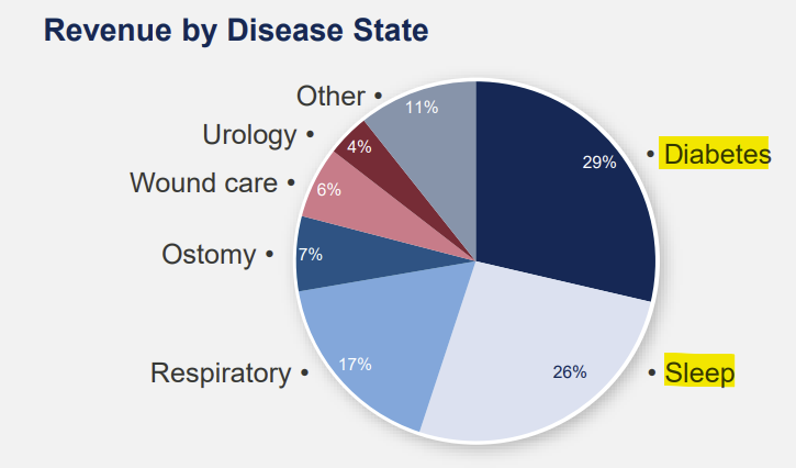 Over half of Patient Direct revenue — so ~40% of consolidated EBITDA — comes from two end markets potentially at risk from Ozempic and other GLP-1 agonists. Pretty much every stock with diabetes exposure sold off in 2023, and sleep apnea players didn’t do much better2.