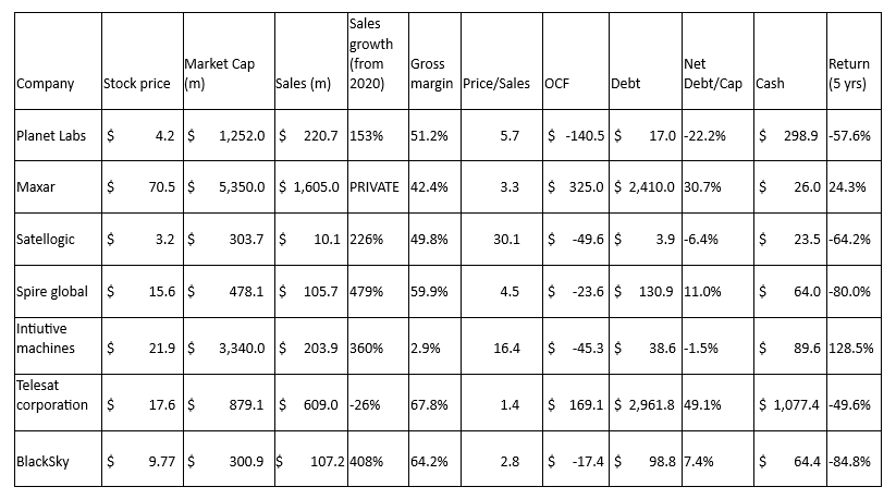 All companies in the industry are exposed to sudden major losses. For example, in 2021 BlackSky incurred a $18M satellite impairment loss because they lost 2 satellites. This is a high risk/high reward sector.