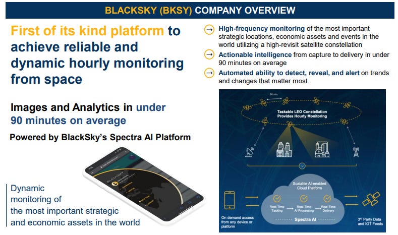 In addition, three days ago BlackSky reported it had won “multiple rapid procurement contracts for its high-margin, core analytics services through the U.S. Space Force’s online Global Data Marketplace (GDM).”