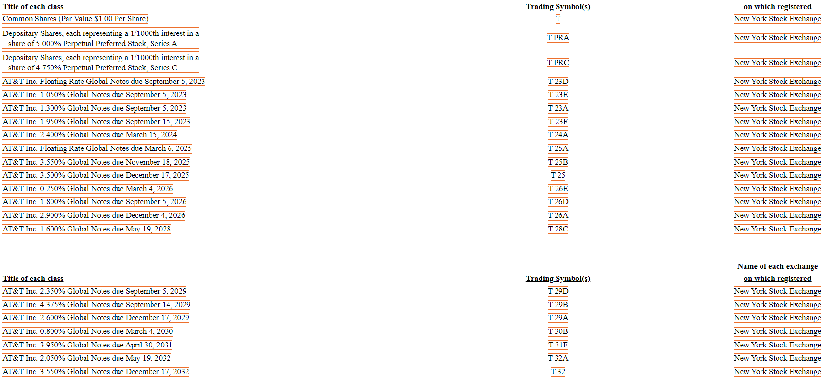 Source: AT&T cover page from 10-Q listing most of the company's exchange-listed bonds