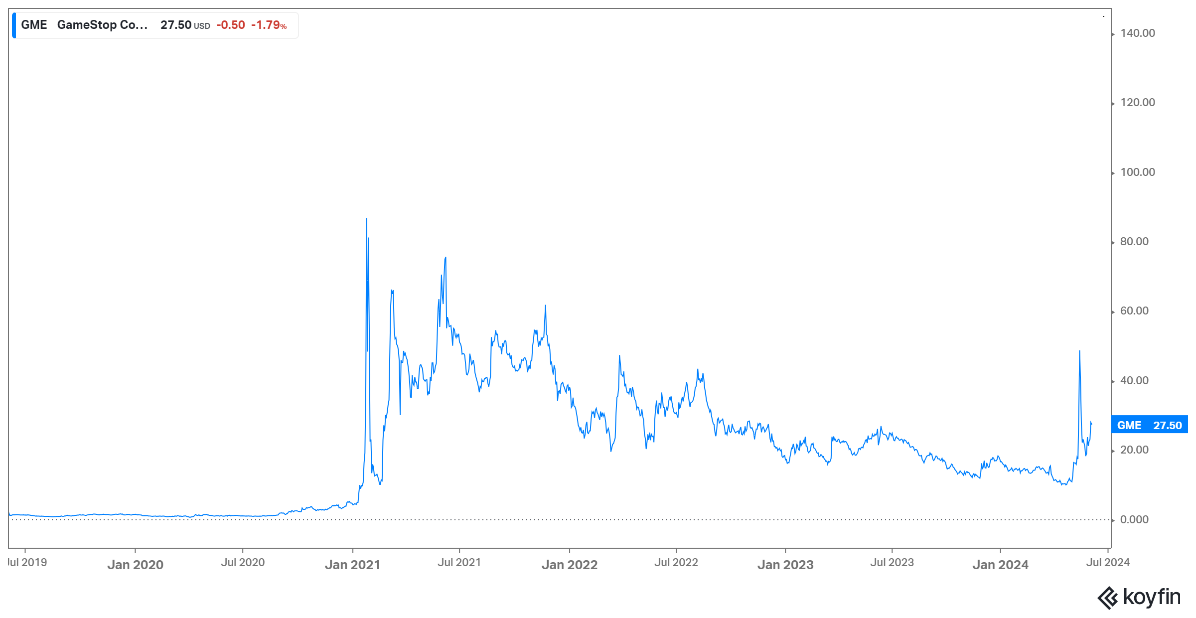 GameStop five-year chart; source: Koyfin.com
