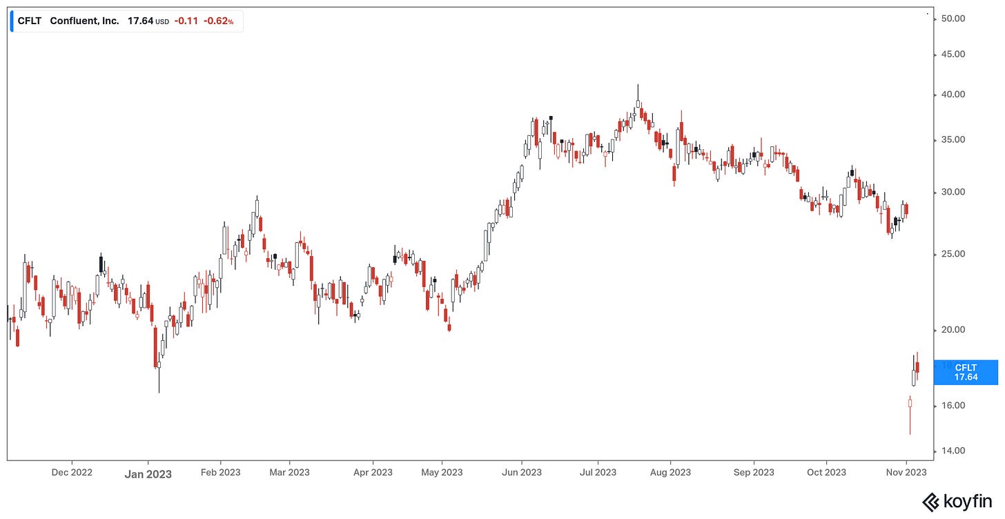 The next day, Confluent stock plunged 42%. But, in this case, the overall numbers seemed reasonably solid. The company’s outlook for fourth quarter revenue missed only by a couple million dollars. Purely in terms of the math, nothing suggested such a sharp plunge, which took roughly $3.5 billion off the company’s market capitalization.