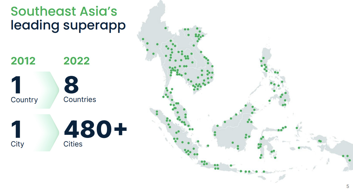 Grab operates in eight countries1 in Southeast Asia, and now serves over 500 cities. It is, per multiple sources, the leading business in the region in both food delivery and ride-hailing.