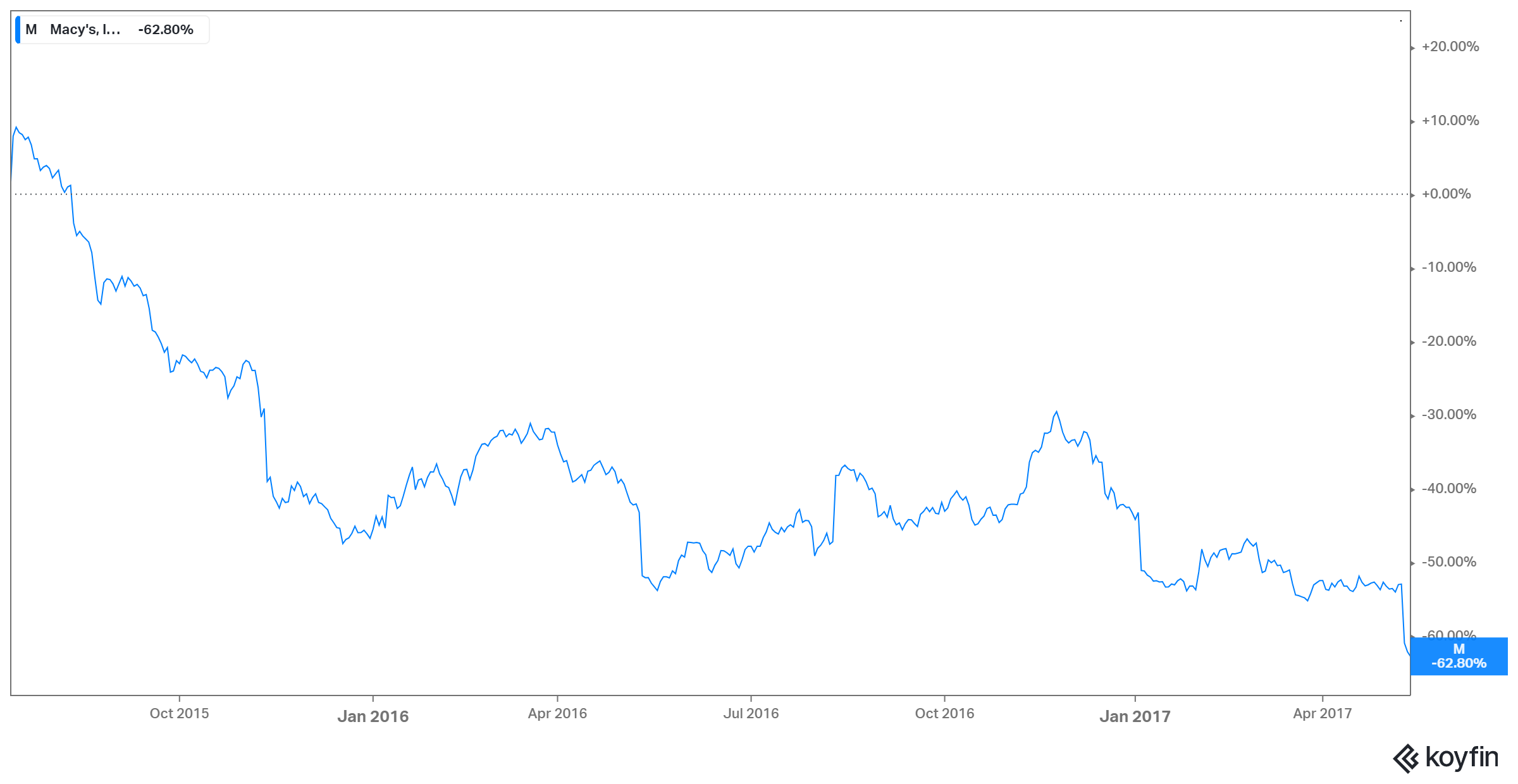 Macy’s wasn’t completely interested in Starboard’s plans: in November 2015 it said it would not spin off a real estate investment trust to own its properties. But it did take a few steps in that direction. In July 2016, the company hired an investment bank to help it explore ways to monetize its properties. In November, it entered into a partnership with Brookfield Asset Management BAM 0.00%↑. But the process wasn’t fast enough, or big enough, for Starboard. The firm sold its position in May 2017, taking a big loss in the process: