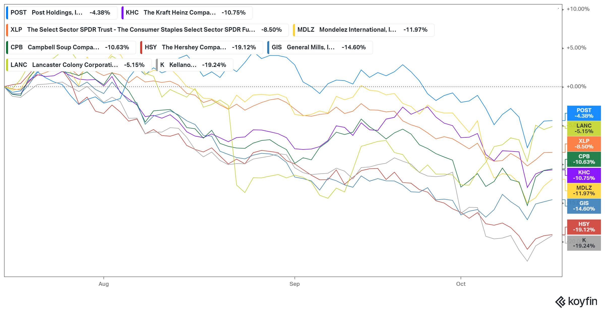 Certainly, they have been so far. Food manufacturers have been some of the worst-performing stocks over the past three months: