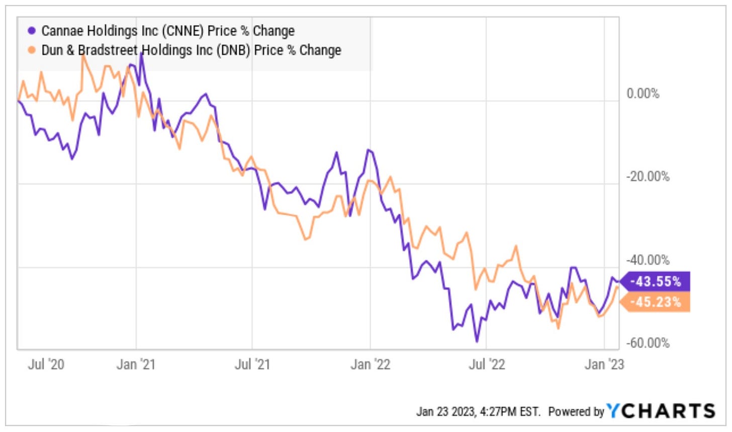 D&B triumphantly returned to the public markets less than 18 months later. Cannae owns 18% of the company, which by its own calculations accounts for roughly one-third of net asset value: