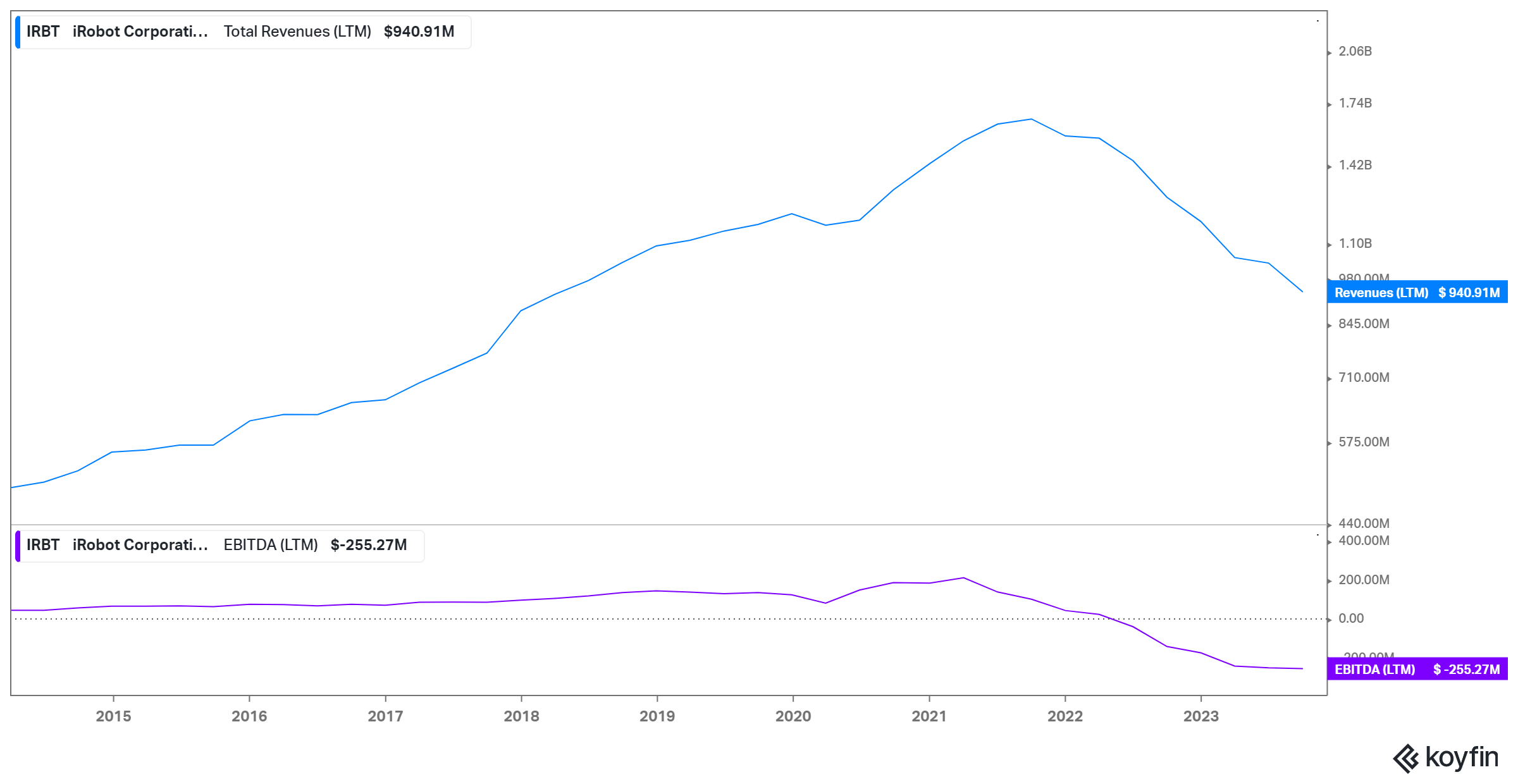 iRobot saw demand spike in 2020 and 2021 — flush consumers were stuck in their homes which suddenly looked a lot messier. That demand was pulled forward from 2022 and 2023, years which also saw spiking input and labor costs. It’s at least possible that weak results of the last two years were driven primarily by the external environment.