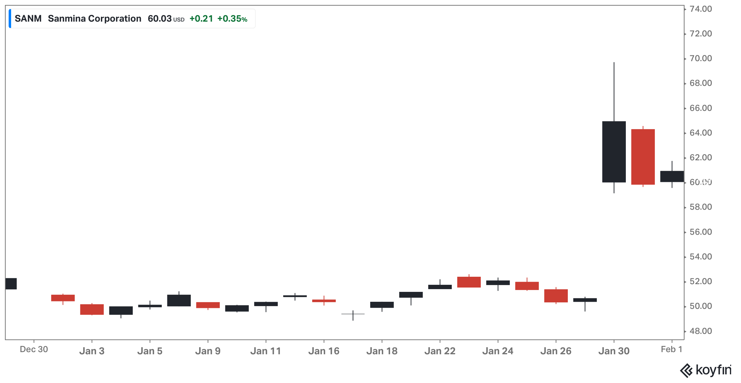 SANM had a huge week for reasons that aren’t quite obvious. The long-term case remains intact, but short-term trading may see some volatility.