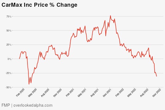 The disastrous Q3 earnings report from CarMax has brought down the space with it. Both AN and PAG were roughly flat year-to-date until that release.